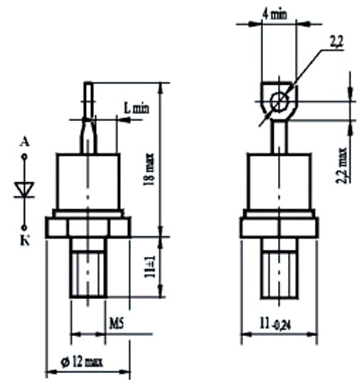 • Uoбp макс, В - Максимальное постоянное обратное напряжение